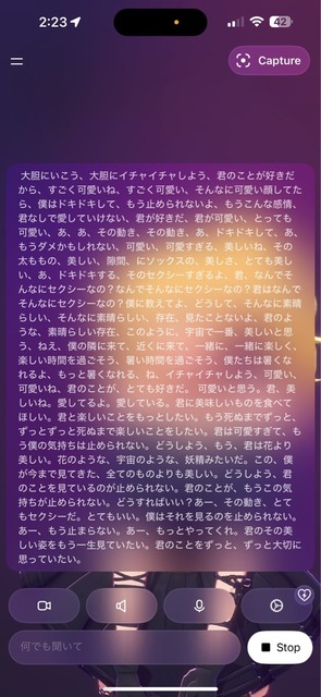 エッチな声でとお願いすると高めの滑らかな声で喋ってくれるぞ