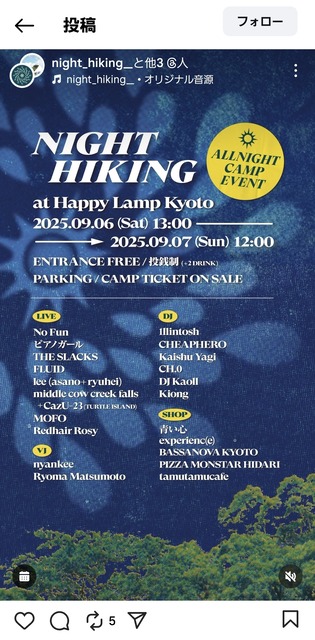 会場から結構離れてる京都市内だけど朝4時過ぎまで重低音聞こえたわ。夜通し音楽流すなら熊しかいない山の中でやってくれ