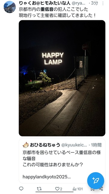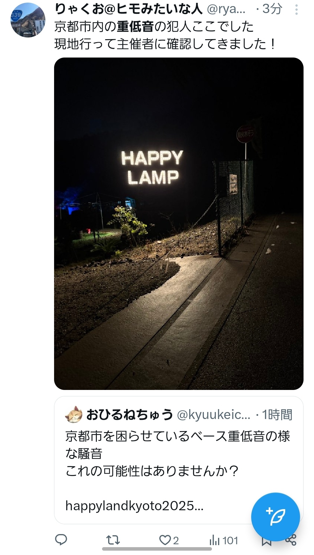 今は時間と距離的にハッピーランドとかいう長岡京でやってる奴ちゃうか言われてるけど情報少なすぎて分からんわ