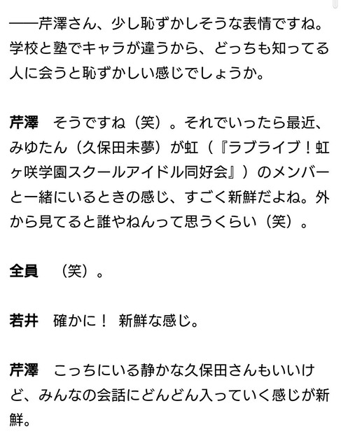 最初は芹澤が一番だったけどラブライブ決まって追い抜いた感