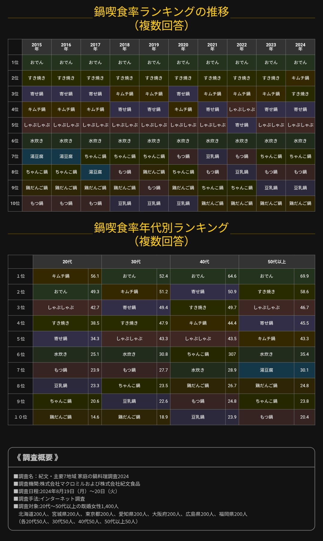 2位がもつ鍋とか寄せ鍋の時点でそらキムチ鍋1位なるわ