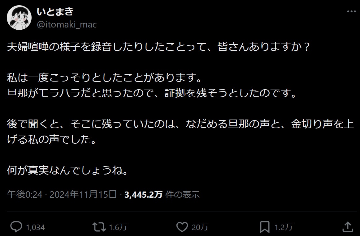 夫婦仲良いでーーすってXで呟いたら嫉妬で叩くんだもんな