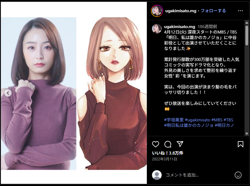【画像】宇垣美里(34)、イケメン俳優と濃厚キスwwwww