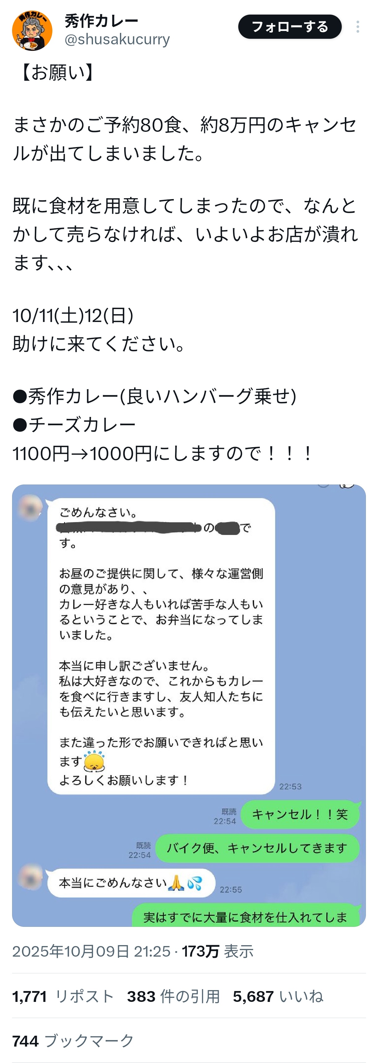 — 秀作カレー (@shusakucurry) October 9, 2025