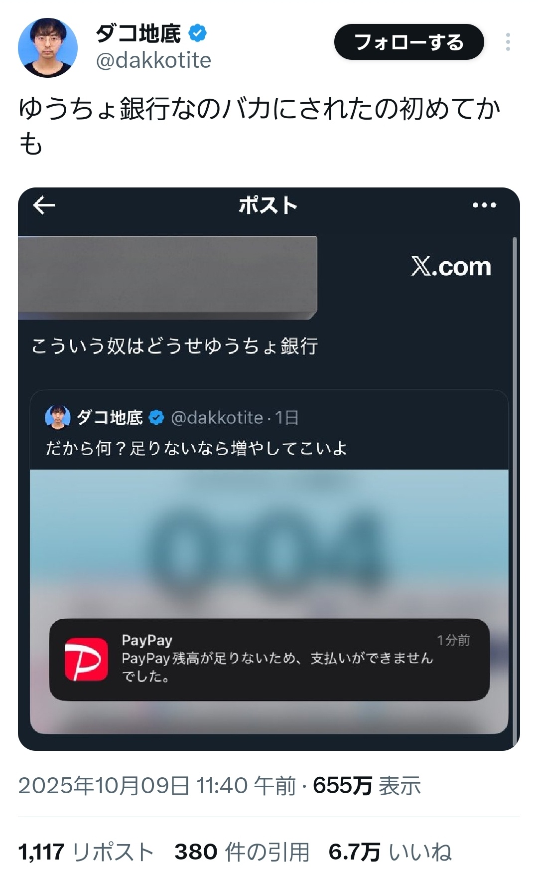 こんなみみっちい事でマウント取って「自分はゆうちょだけじゃないから上」とか思ってしょーもない自尊心保ってるんだろうな
