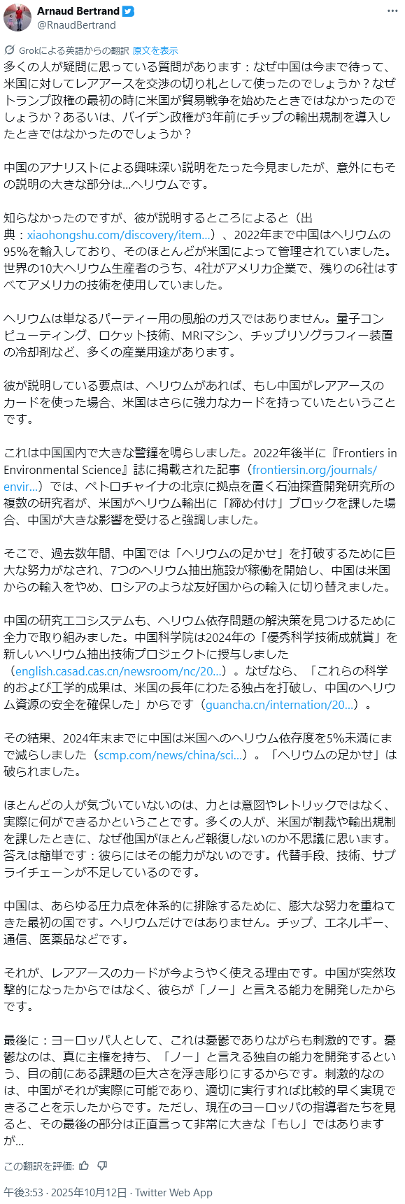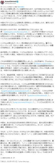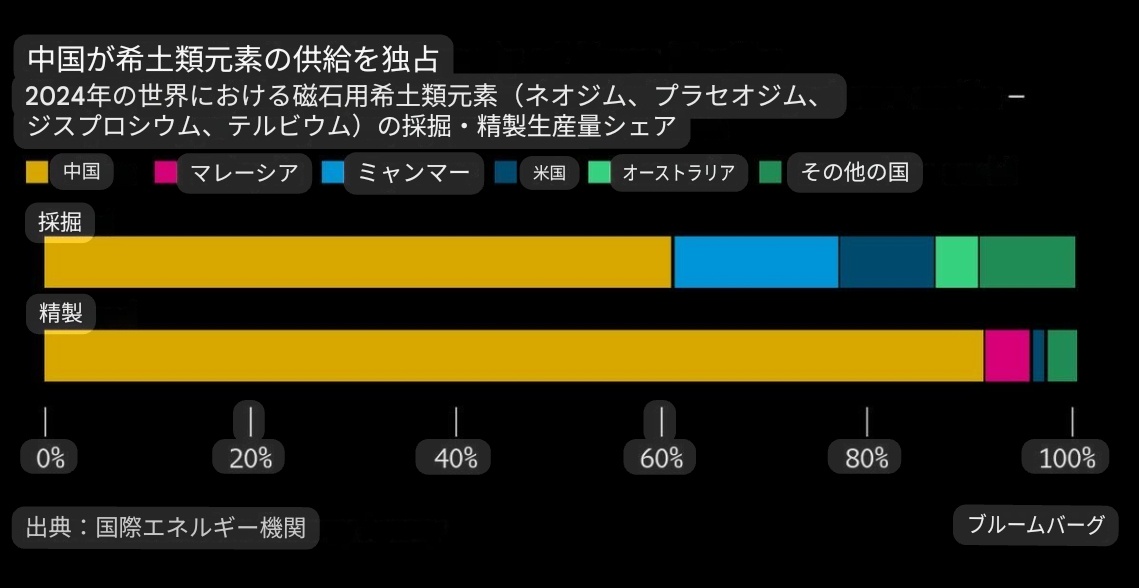 中東と違ってレアアースの精錬技術も独占してるからどこで掘ろうが中国に運ばなきゃいけないの強い
