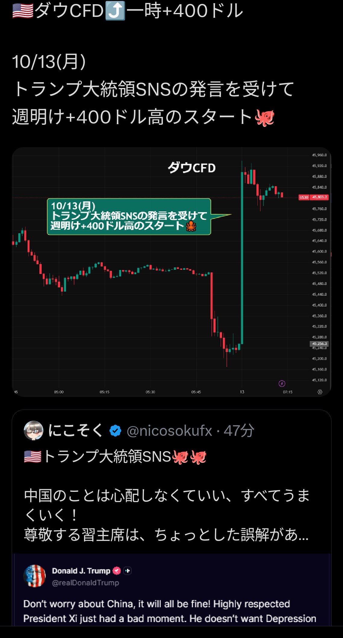 🇺🇸トランプ親分「中国に喧嘩売るとか嘘ですやん!w仲良くするやで~www」→アメリカ株暴騰