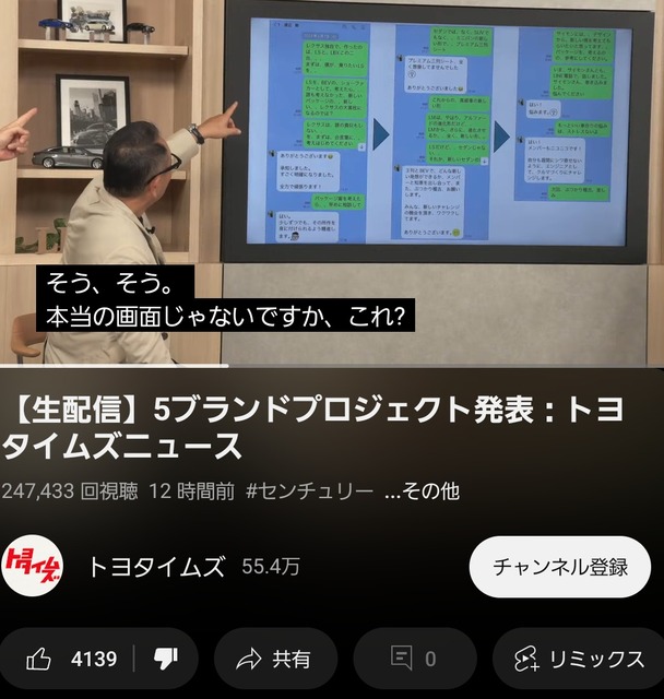 トヨタイムズ(トヨタの公式広報)で、会長自らこのLINEの画像を出して説明してたんやぞ