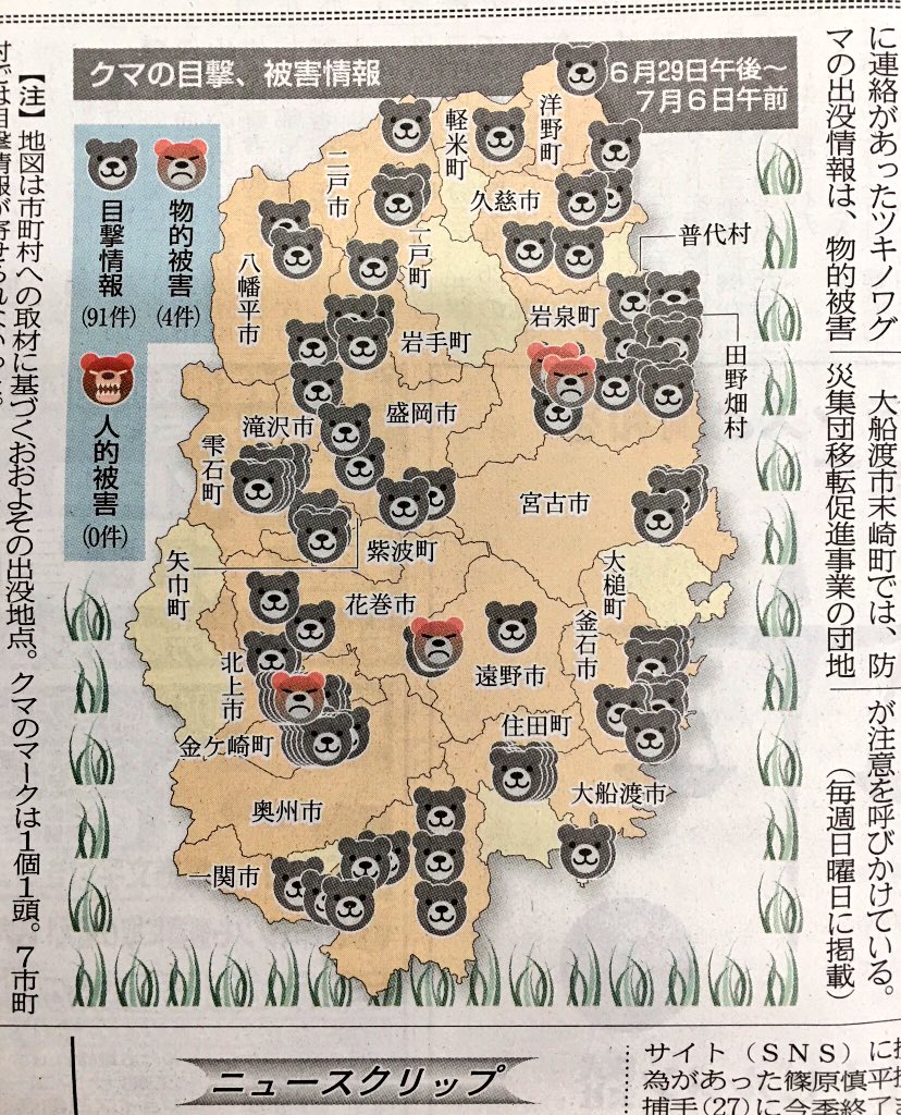 毎日熊被害のニュースあるのこわい