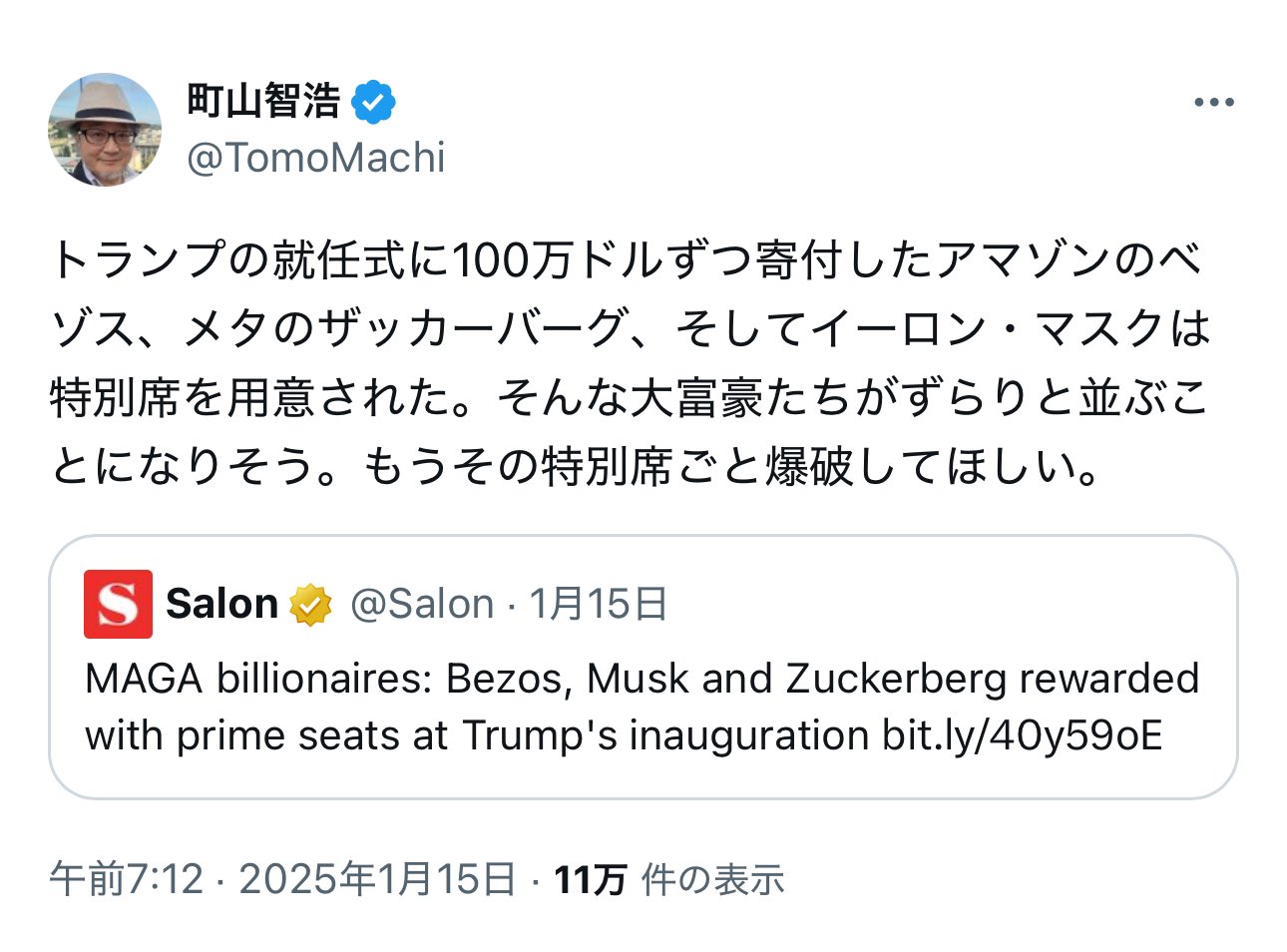 — 町山智浩 (@TomoMachi) October 28, 2025