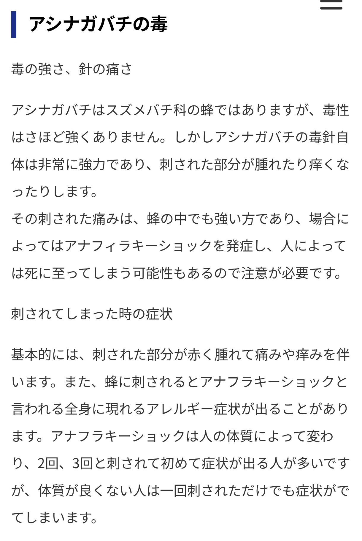 アシナガバチでもアナフィラキシーショックあり得るらしいぞ