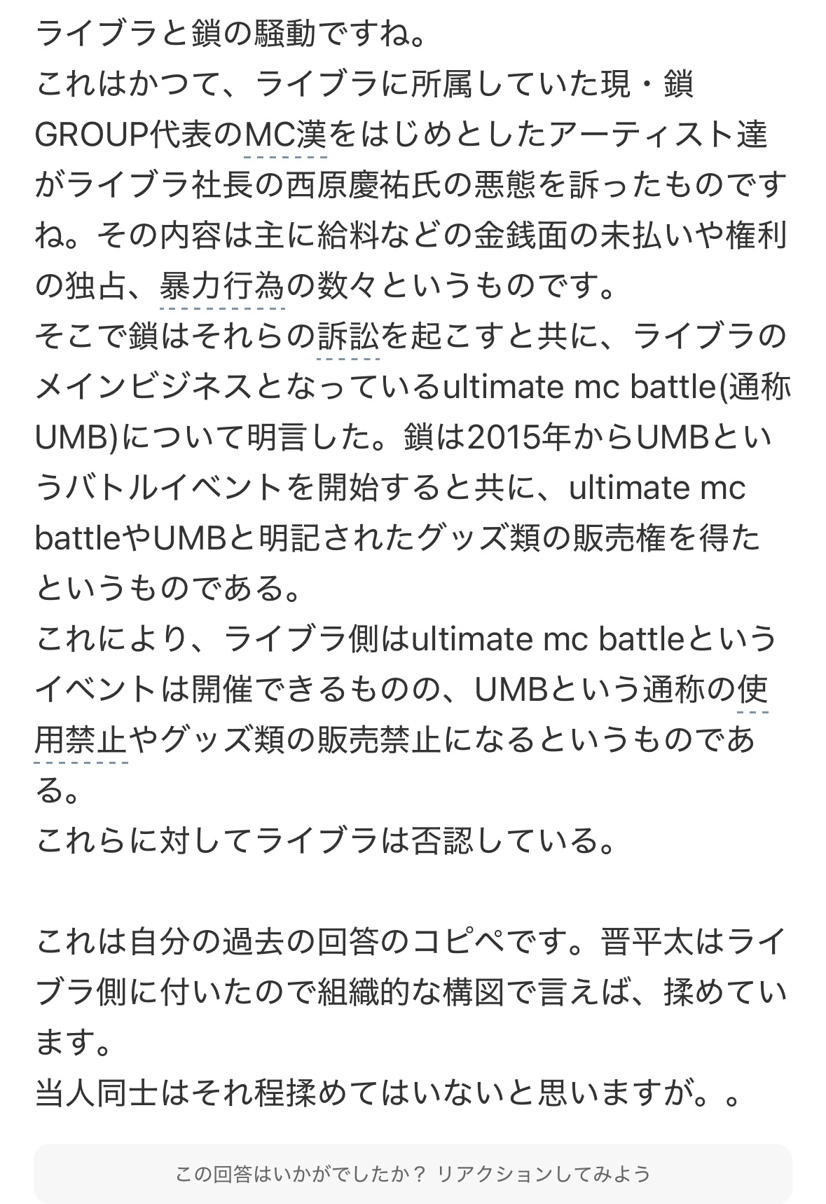 フリースタイルダンジョンで2人は和解してたし漢は漢でライブラと裁判まで起こした立場だから当時は色々思うところはあったやろ
