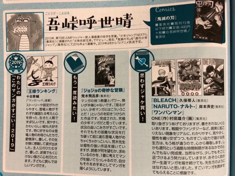 吾峠呼世晴「BLEACH、ナルト、ジョジョに影響受けました」