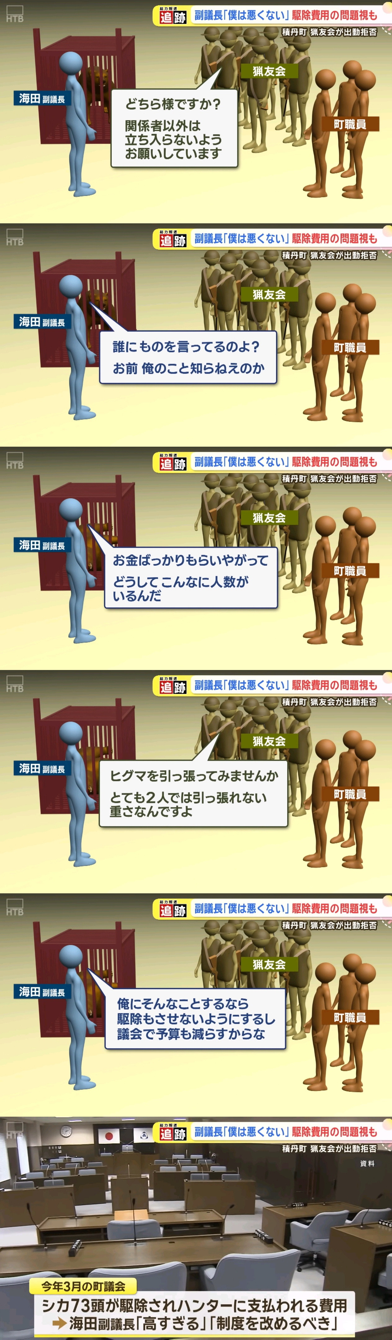 なわけあるか。猟友会が出動拒否してるのは副議長が発砲そのものの妨害しとるからだ。出張ってもこいつがいるとそもそも撃てないんだよ。