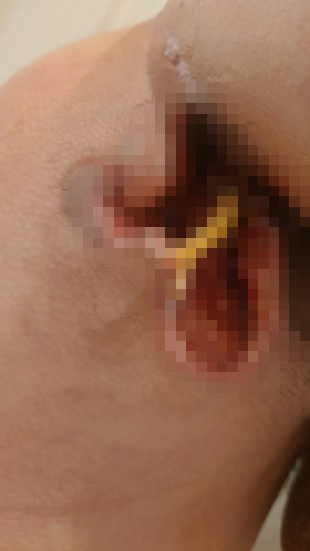 今朝、ケツの膿が爆発して血だらけなって今日緊急手術した
