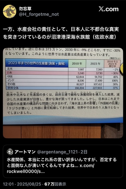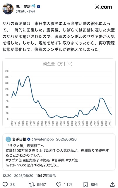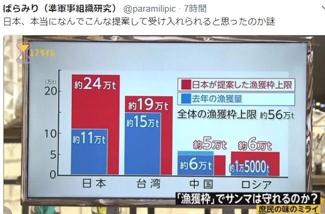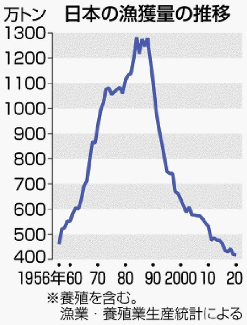 なんで日本だけ取れる量が減っていってるんだろうね?って問いに温暖化以外で返せるアンサーの一つやぞ