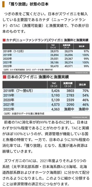 北欧みたいにちゃんと漁船ごとに漁獲枠決めずに早いもの勝ちでなんでも獲るから資源の先食いになっちゃう