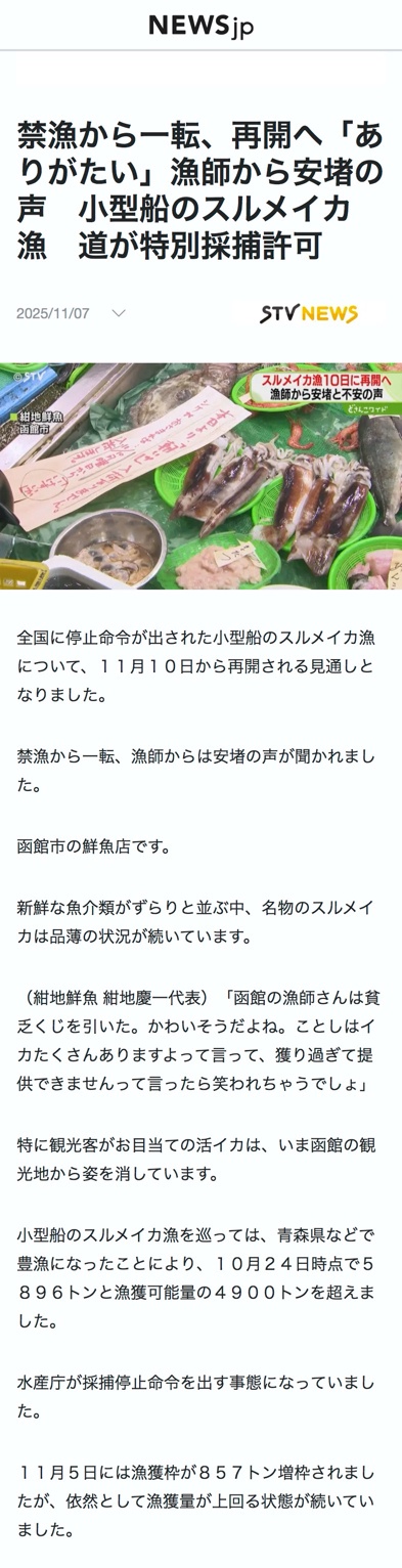 函館「もう漁獲枠ありません」