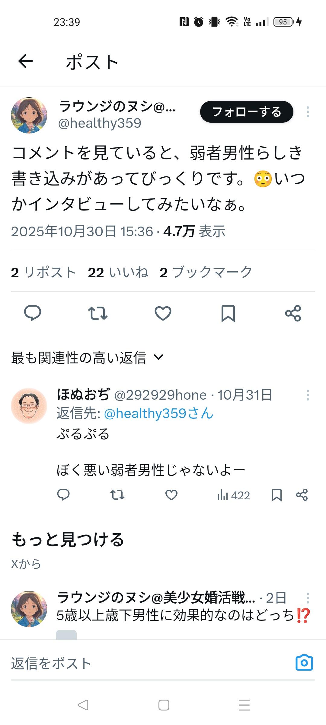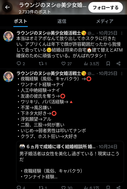 (21) ラウンジのヌシ@美少女婚活戦士😘(@healthy359)さん / X