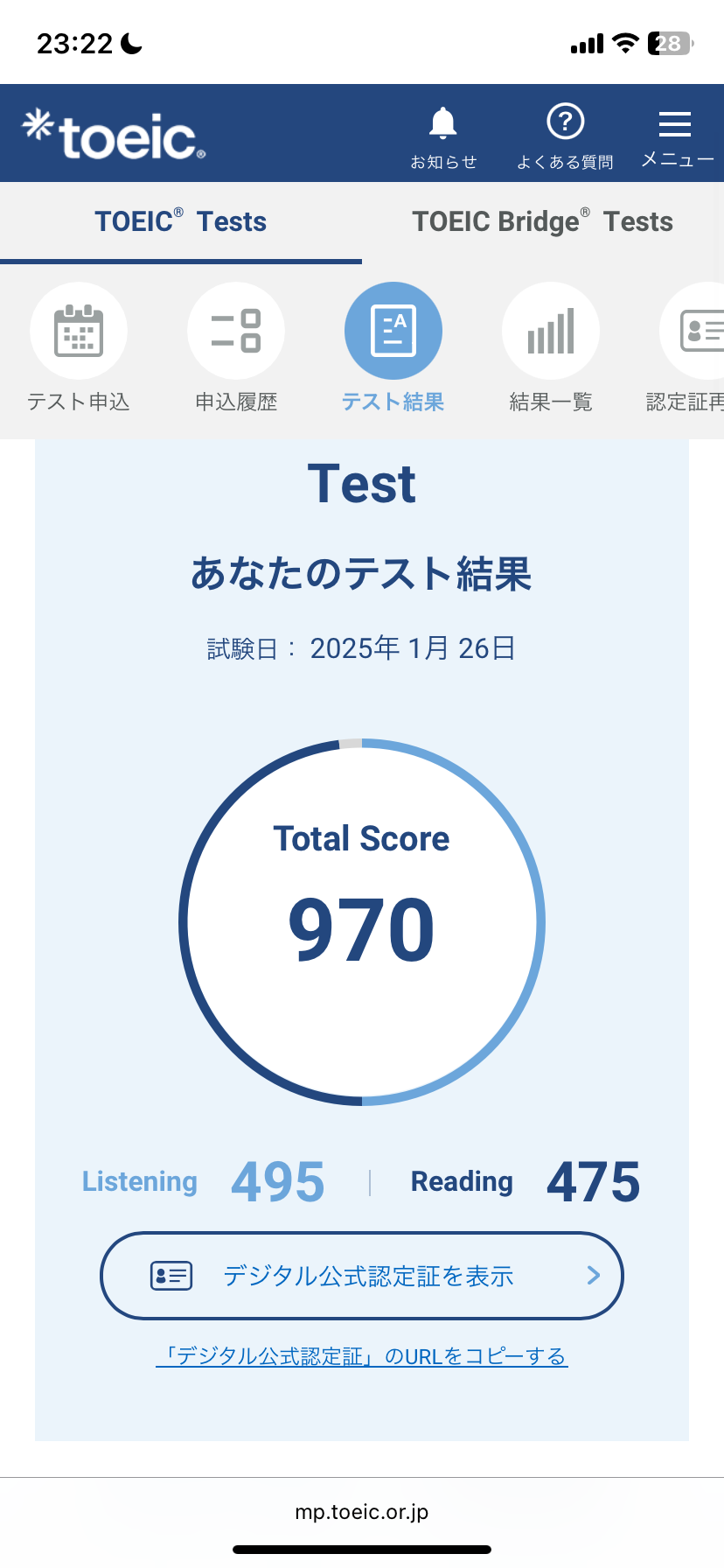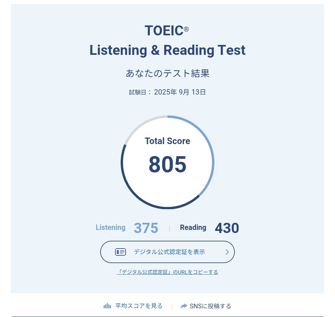 その後英語全然勉強せずに3年ぐらい経ったから多分500点ぐらいまで落ちてたと思う