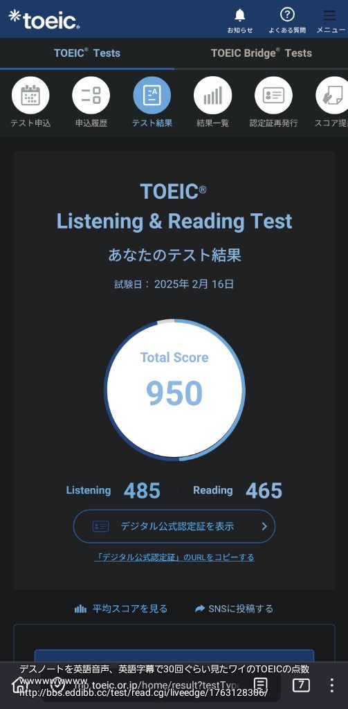 【画像】デスノートを英語音声、英語字幕で30回ぐらい見たワイのTOEICの点数がこちらwwwww