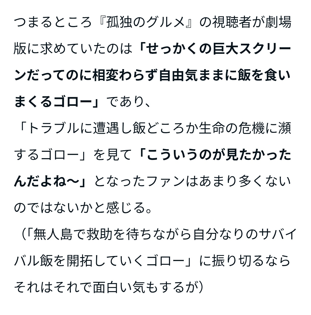 映画を見て、孤独のグルメにドラマ性はいらないんだなとあらためて思ったわ