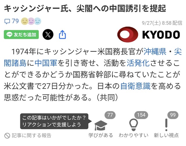 戦争になったら日本は孤立無援だとでも見積もるのは世間知らずの勝手なので、