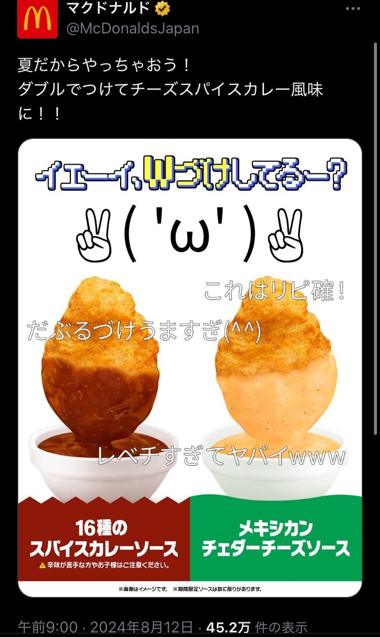 キッズはそのまま喜ぶしキツイと思う層にはこうやって広がるしどう転んでもマックの勝ちやんけ