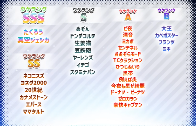 たくろうも最終決戦残る可能性とヨネダ2000は安定の5位な気がするかな