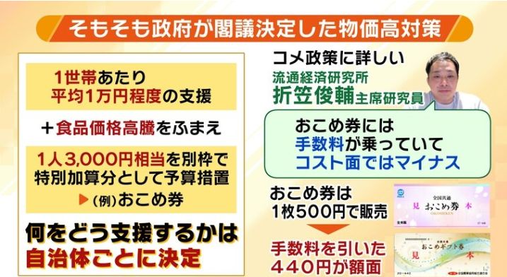 国「物価高騰対策のために予算配ります、使い道は自由やけどおすすめはお米券やで~w」