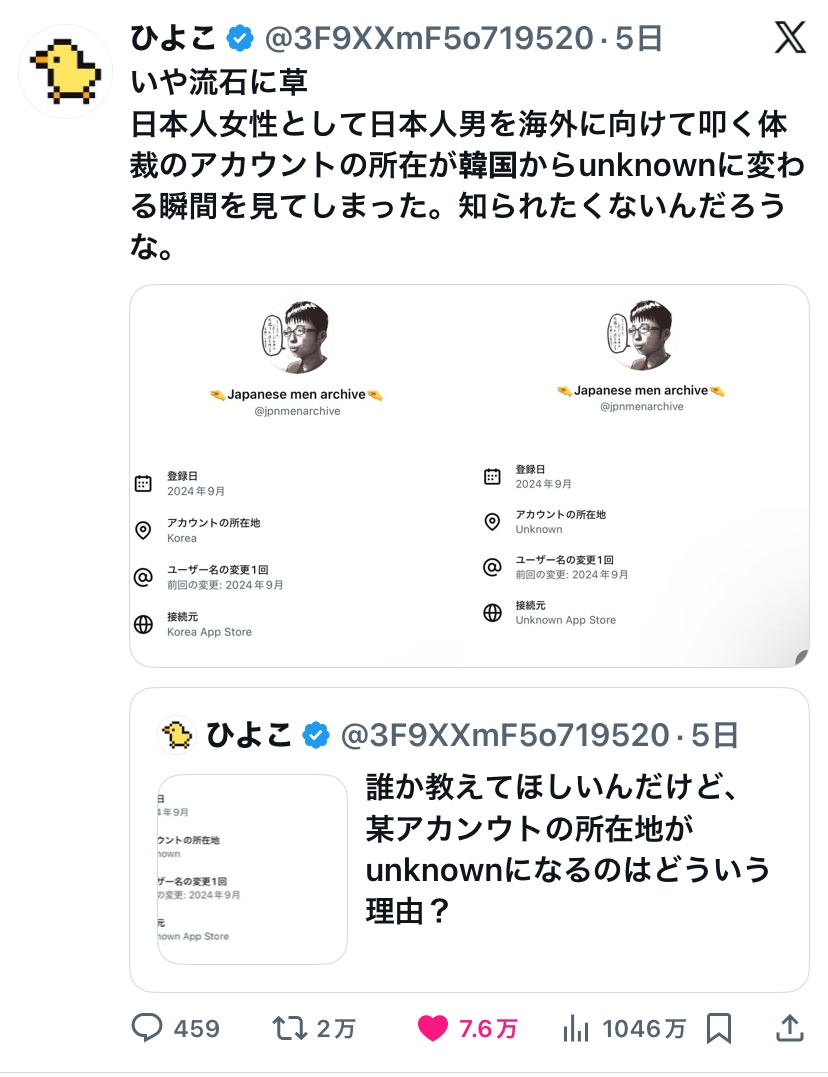 Xの国籍開示アプデで自称海外勤めが日本在住なのバレまくってたのもそうやけど嘘つきばっかやからなX