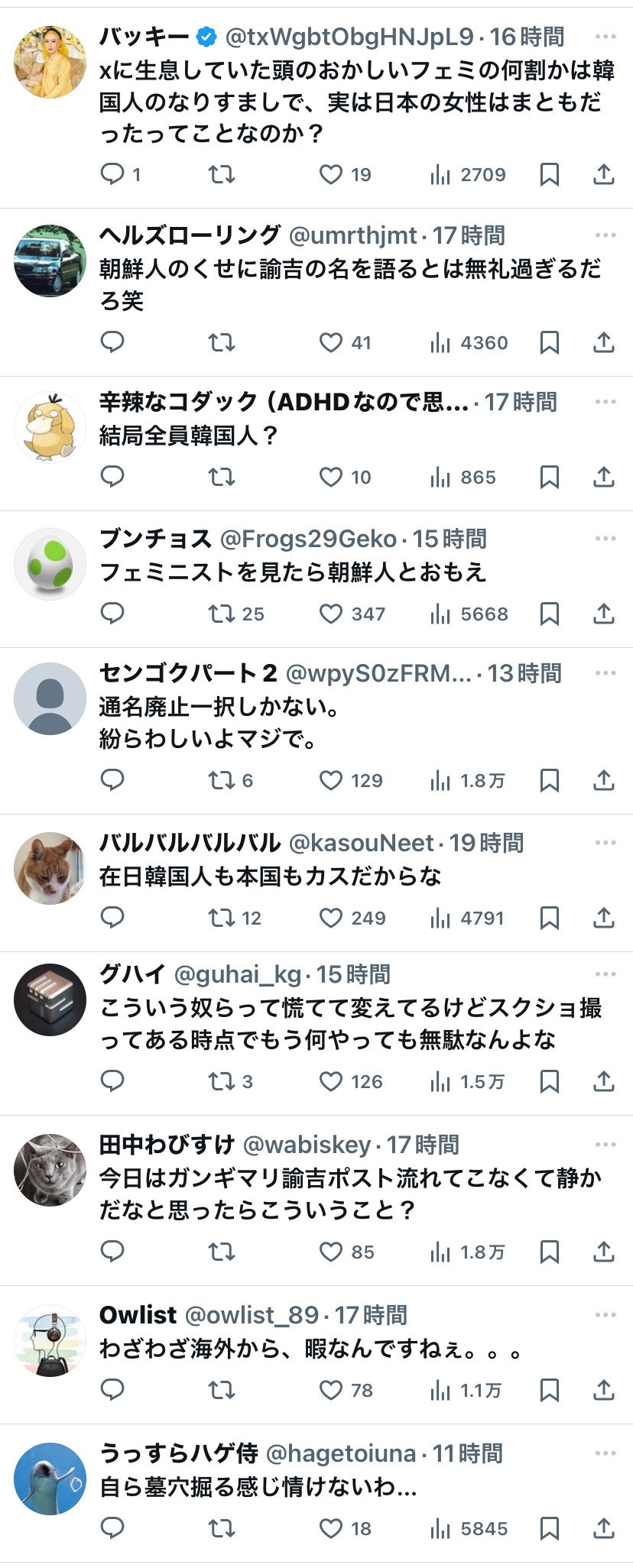 当たり前のように黒人や女性、身体障害者、精神障害者、LGBTQ+、老人、未成年、外国籍、帰化人、ハーフへの差別が万バズしてる模様