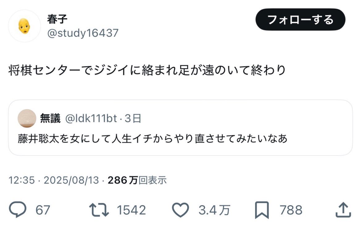 藤井六冠と7戦やって勝ち越せる女地球上に存在しないと思う😂