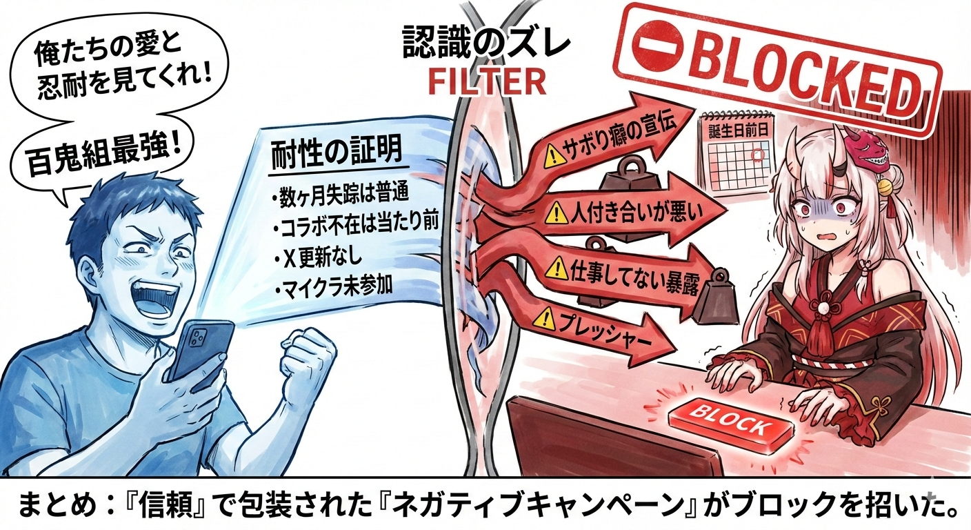 ホロライブVファン「配信あんまないけど、たまに顔見られるだけで幸せ!」→ 推しにブロックされる😭
