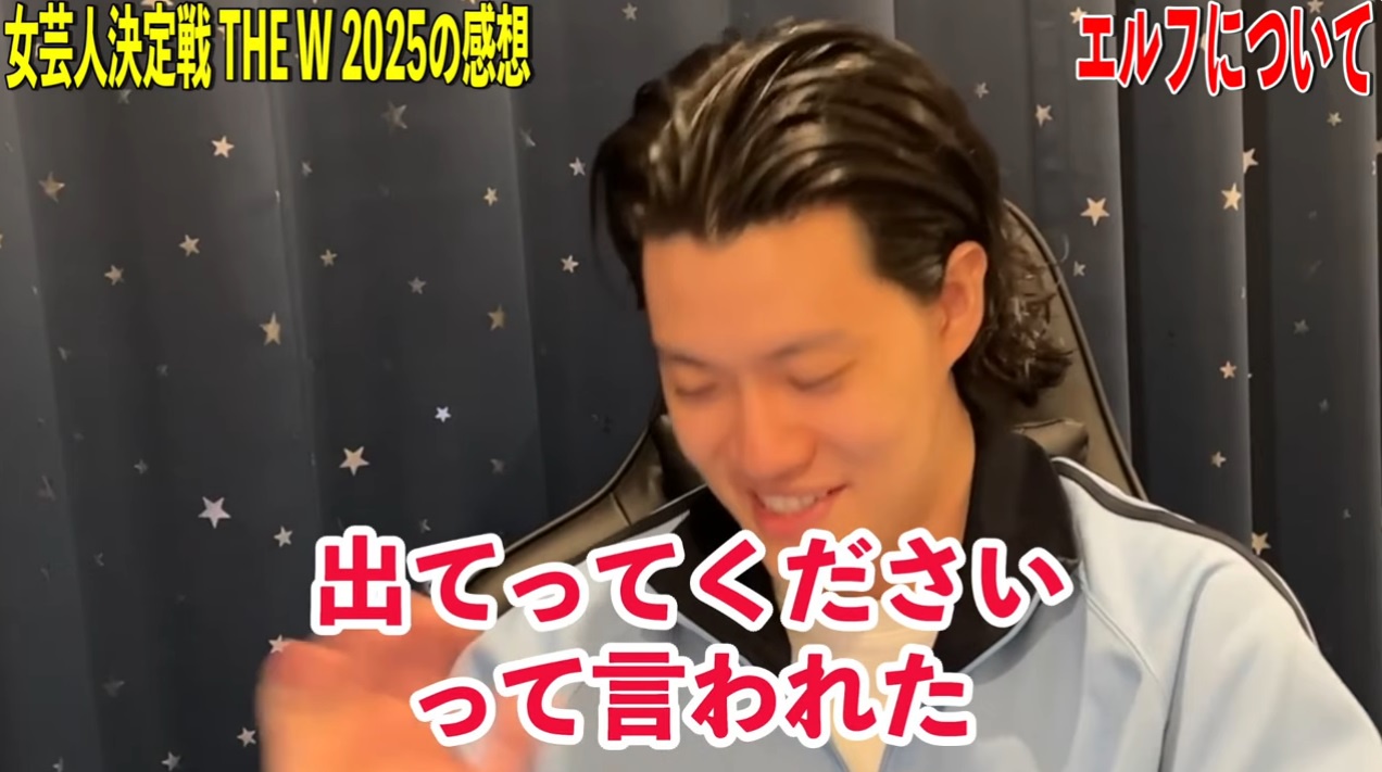それに、一応コンテストだし、あそこで芸人同士でわーわーやり取りするほうがセンスないだろ。エルフの言葉でもう大爆笑おきて負け顔したとこでもう落ちてるんだよ。