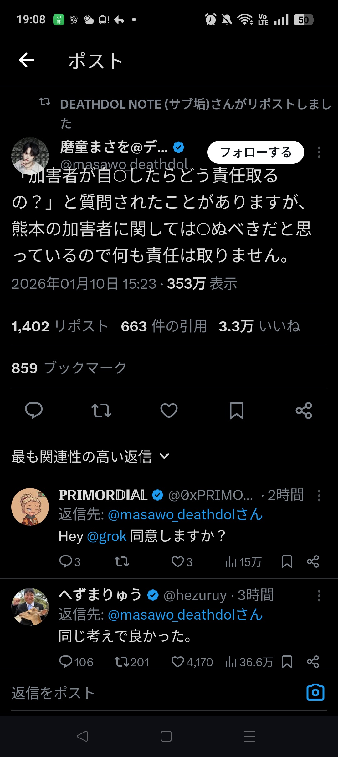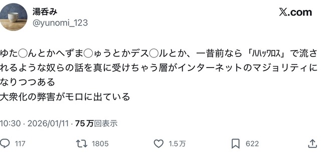 — 磨童まさを@デスドル創設者 (@masawo_deathdol) January 11, 2026