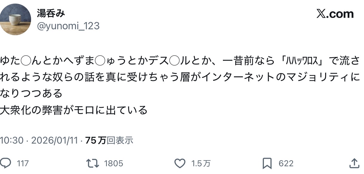 今のSNS(というかX)は叩けるもの見つけて皆で叩いて気持ちよくなるのが大衆娯楽みたいな雰囲気感じるし、こういうのが求められてるんだろう