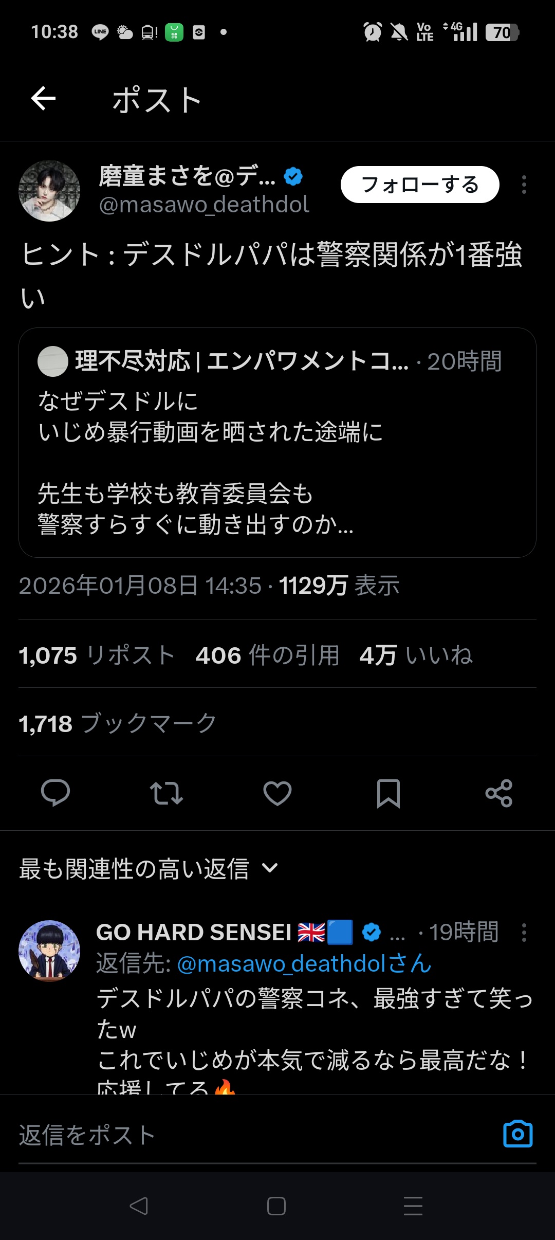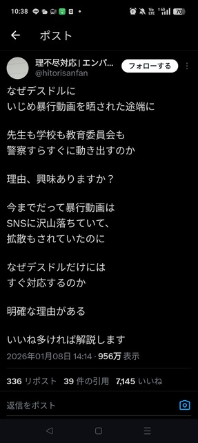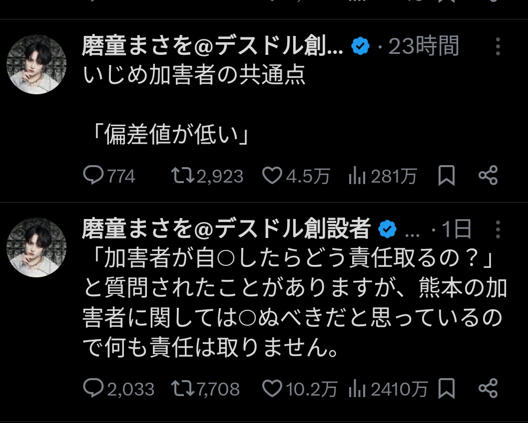 デスドル「俺の自民党議のパパは警察とのコネクションがあるから言うこと聞く。ちなみに俺は加害者晒ししてるけど加害者は自殺するべきだと思う」