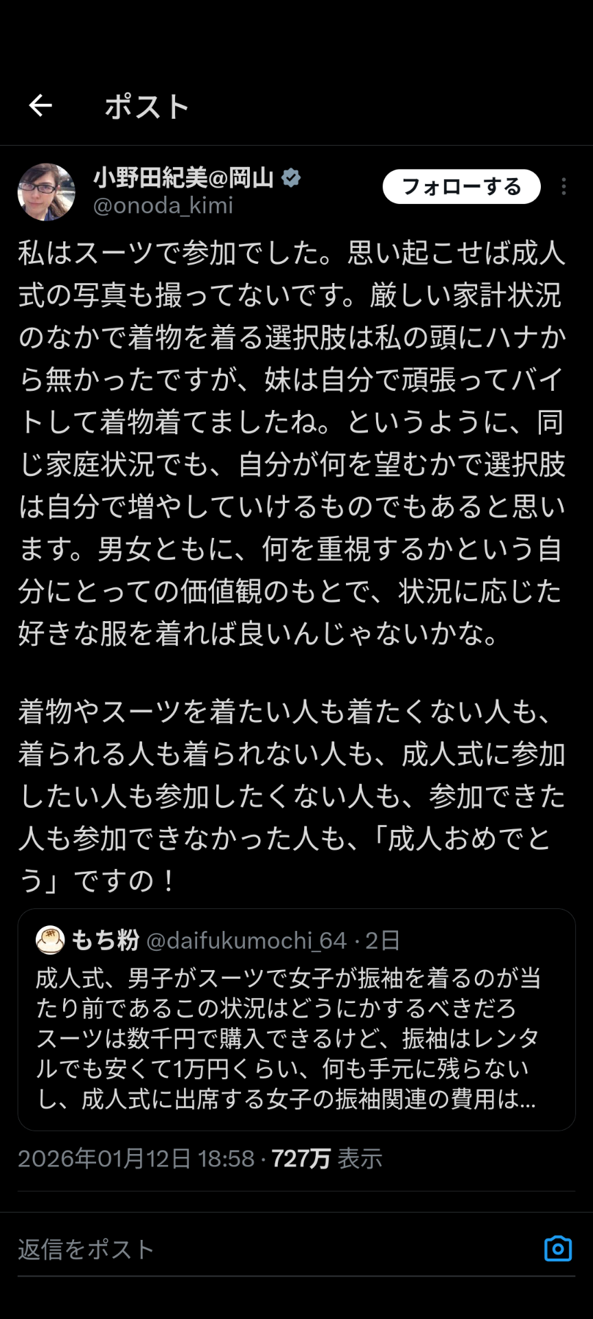 — 小野田紀美@岡山 (@onoda_kimi) January 12, 2026