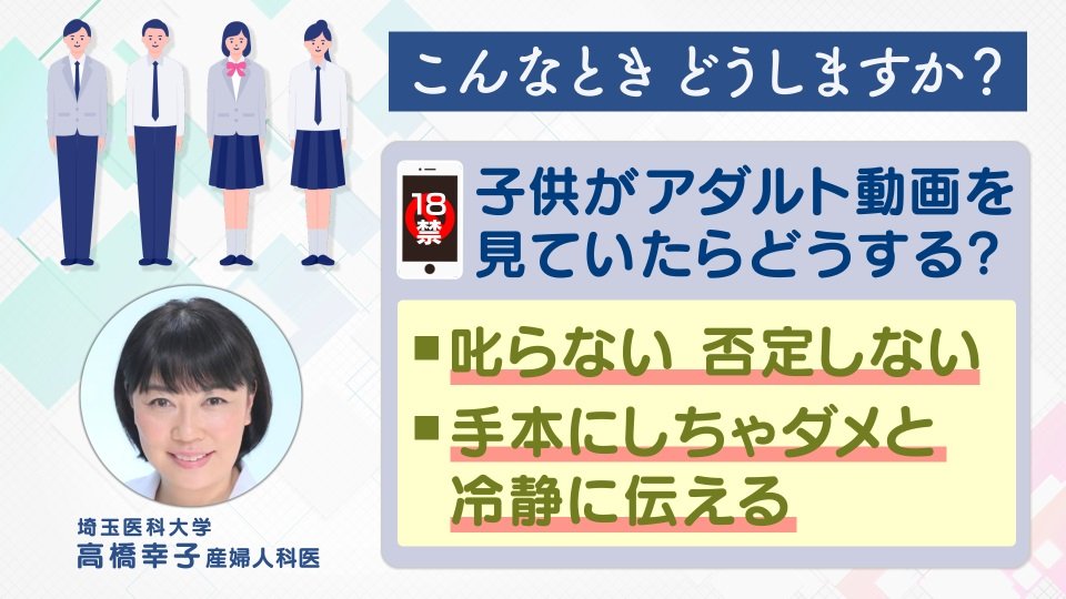見せたらいいよ。そのうえで場所とか避妊とか妊娠についてちゃんと教える。