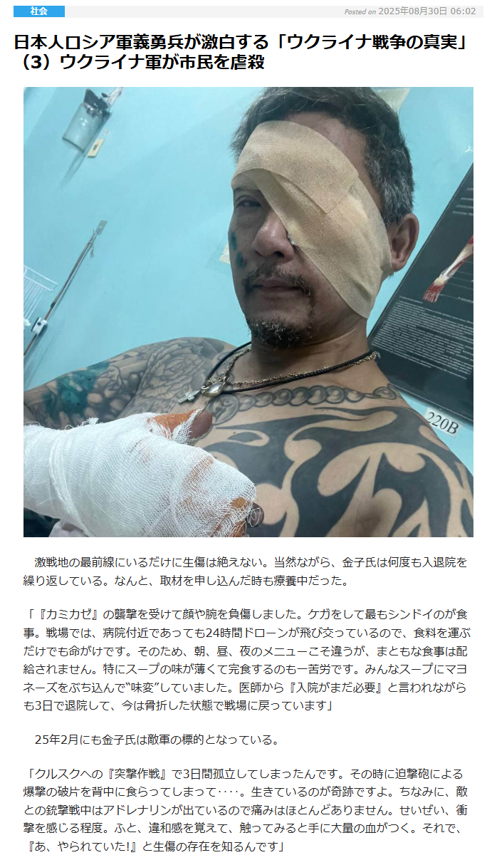 ウクライナ戦争初期から戦っていた日本人義勇兵Gangstaニキ(習志野空挺→ウクライナ義勇兵)、負傷して暫く入院してたと思ったら脚を失っていた模様