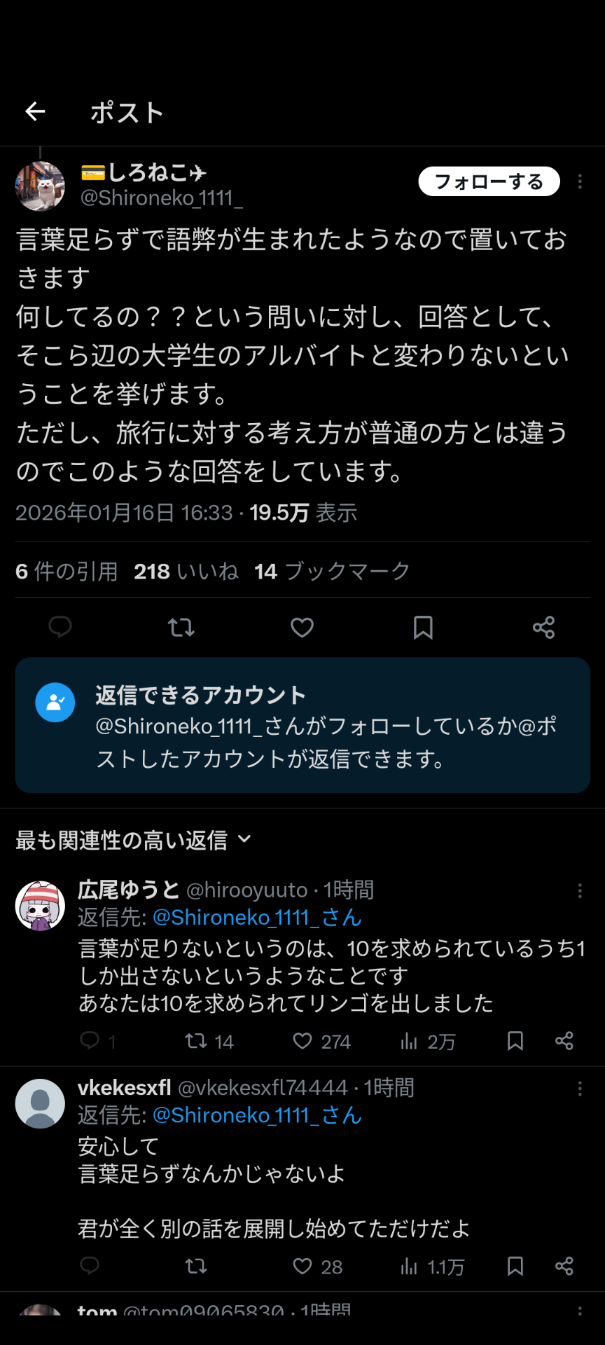 女「海外行きまくってる大学生って何してんの?夜職?実家激太?闇バイト??」 学生「頭の構造が違う」