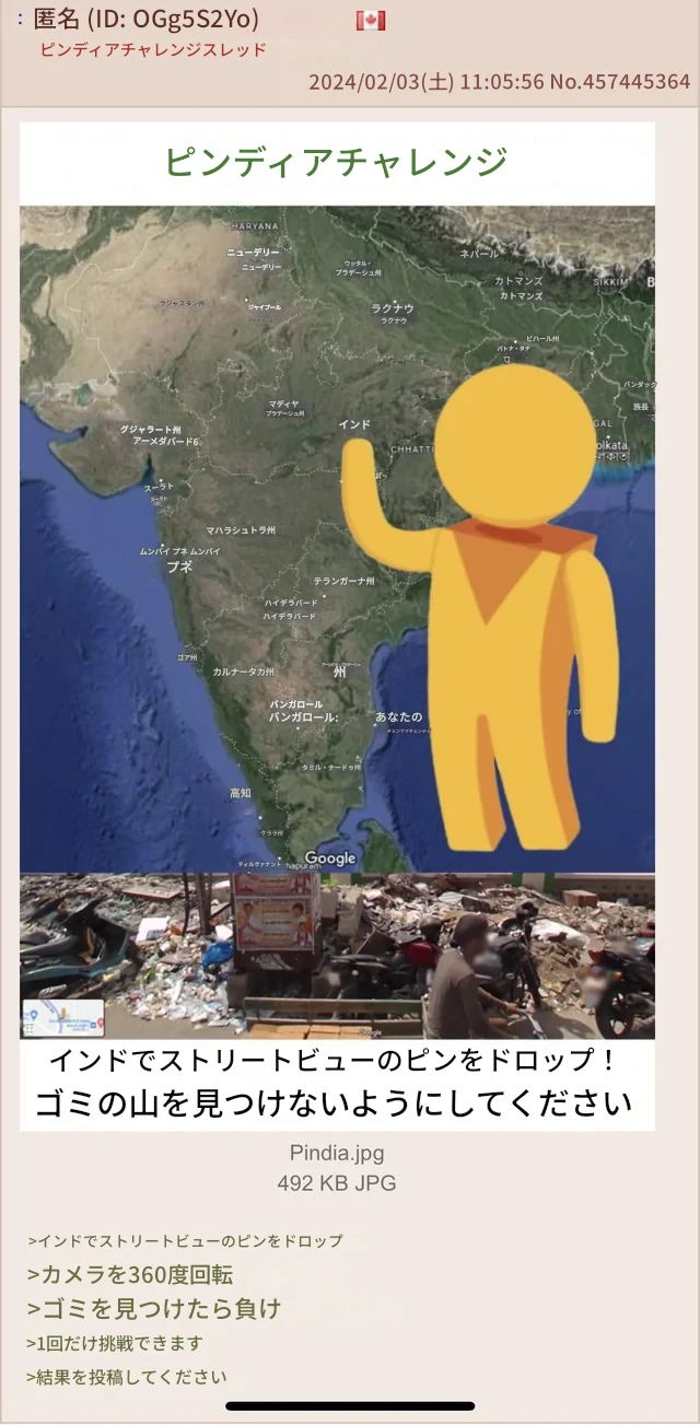 お前らインドでストリートビューのピンをドロップして、その後360度見渡してゴミの山見つけたら負けゲームやろうず