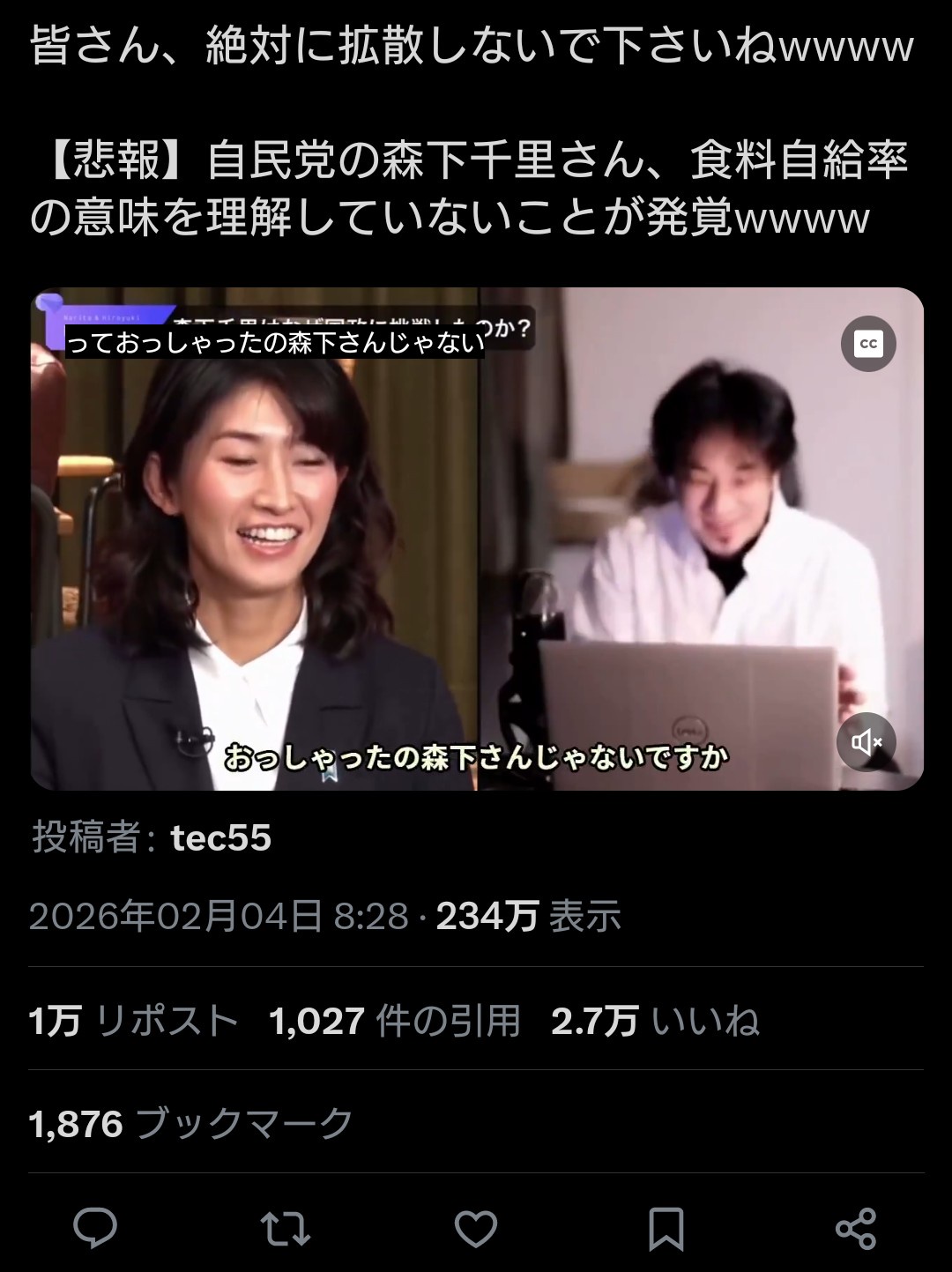 まあ、政治家向いてないよ。中道改革連合でアドバイザーやっていればいいさ。政治家やってもどうせ失言で辞任に追い込まれるタイプだろうし。