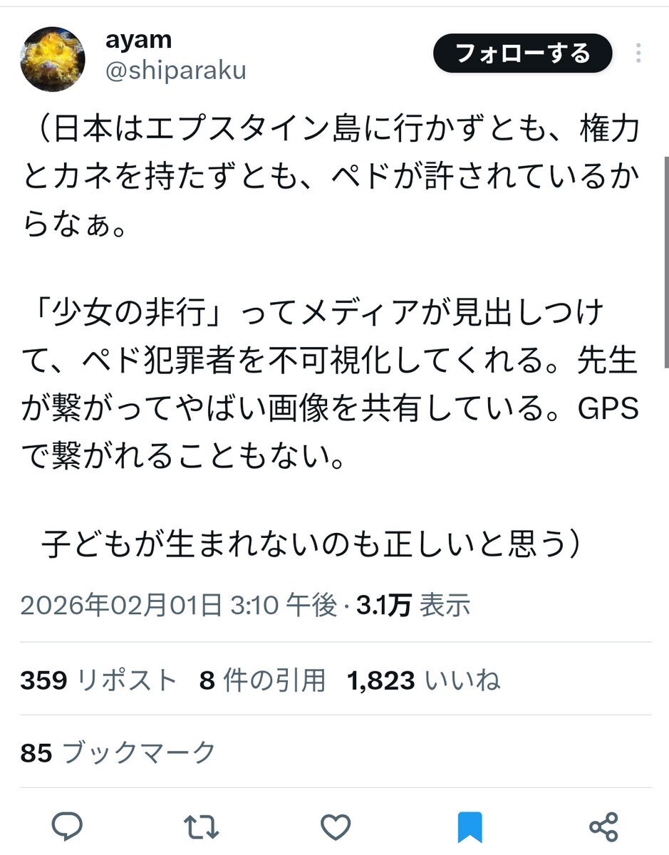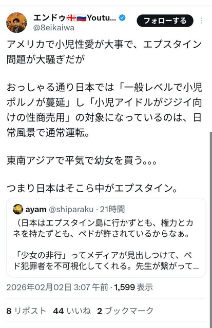 エプスタインとかそんな次元の話じゃねえだろ