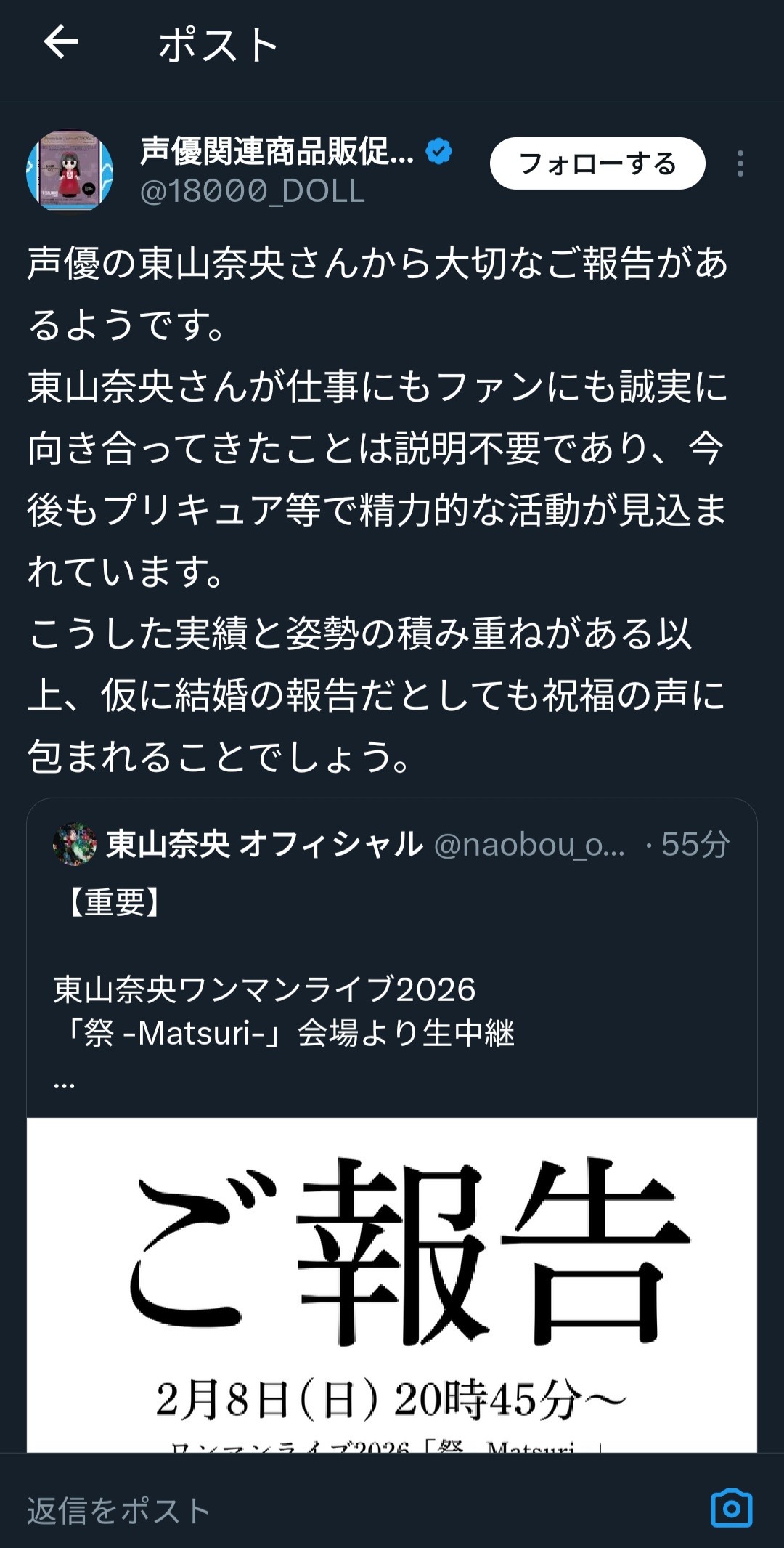 — 東山奈央 オフィシャル (@naobou_official) February 6, 2026