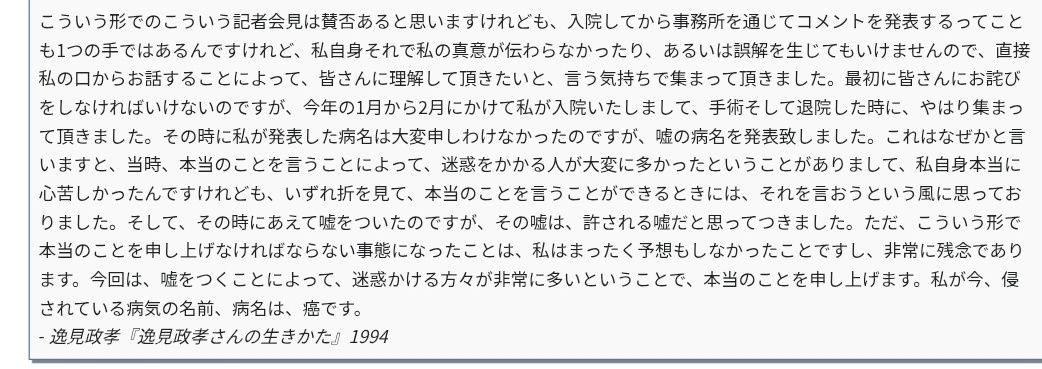 世代じゃないのでwikiを見てみたけど発表と闘病に際していろいろあったんだな