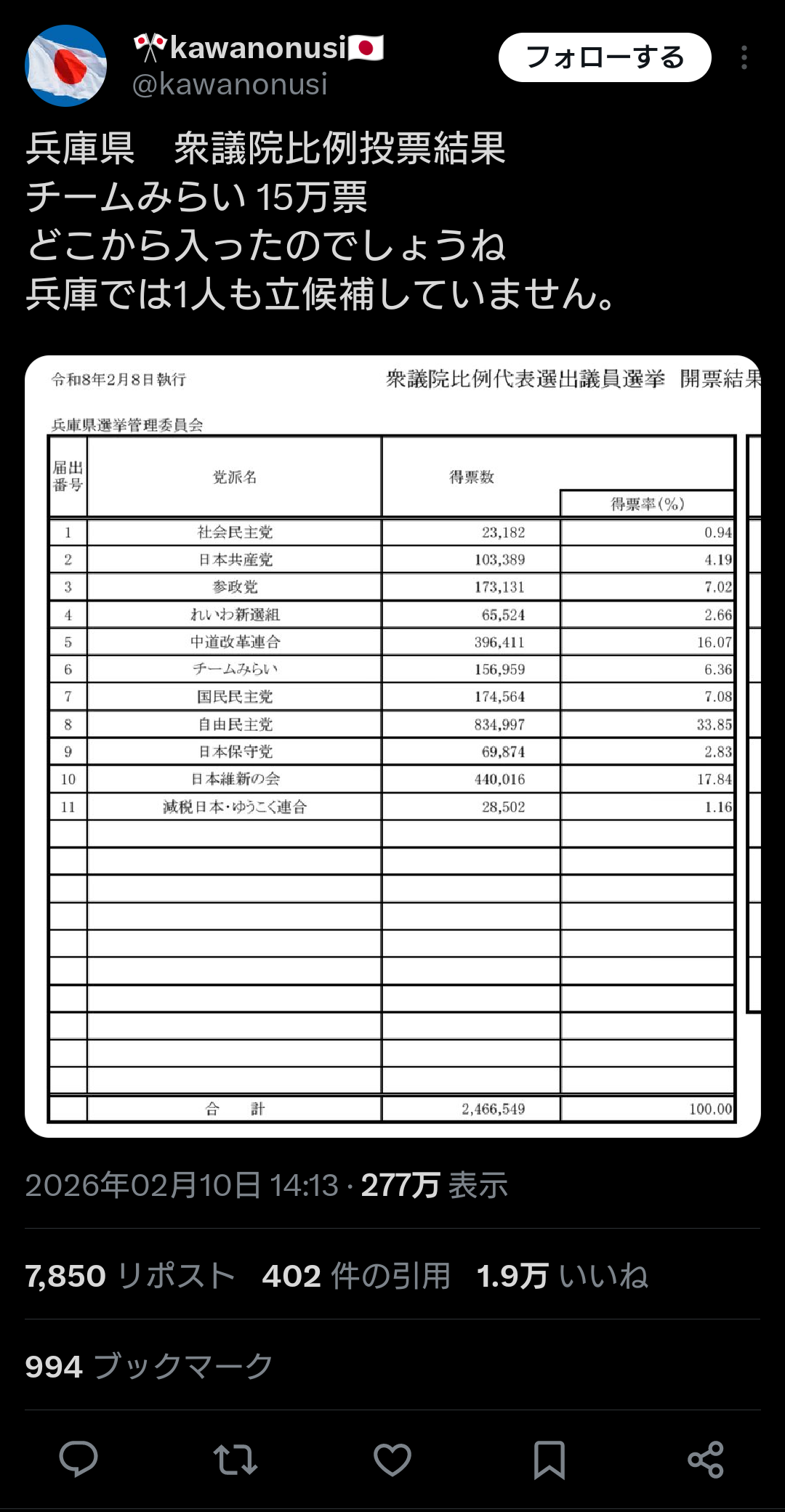 民意じゃなくていつもの宗教票じゃん