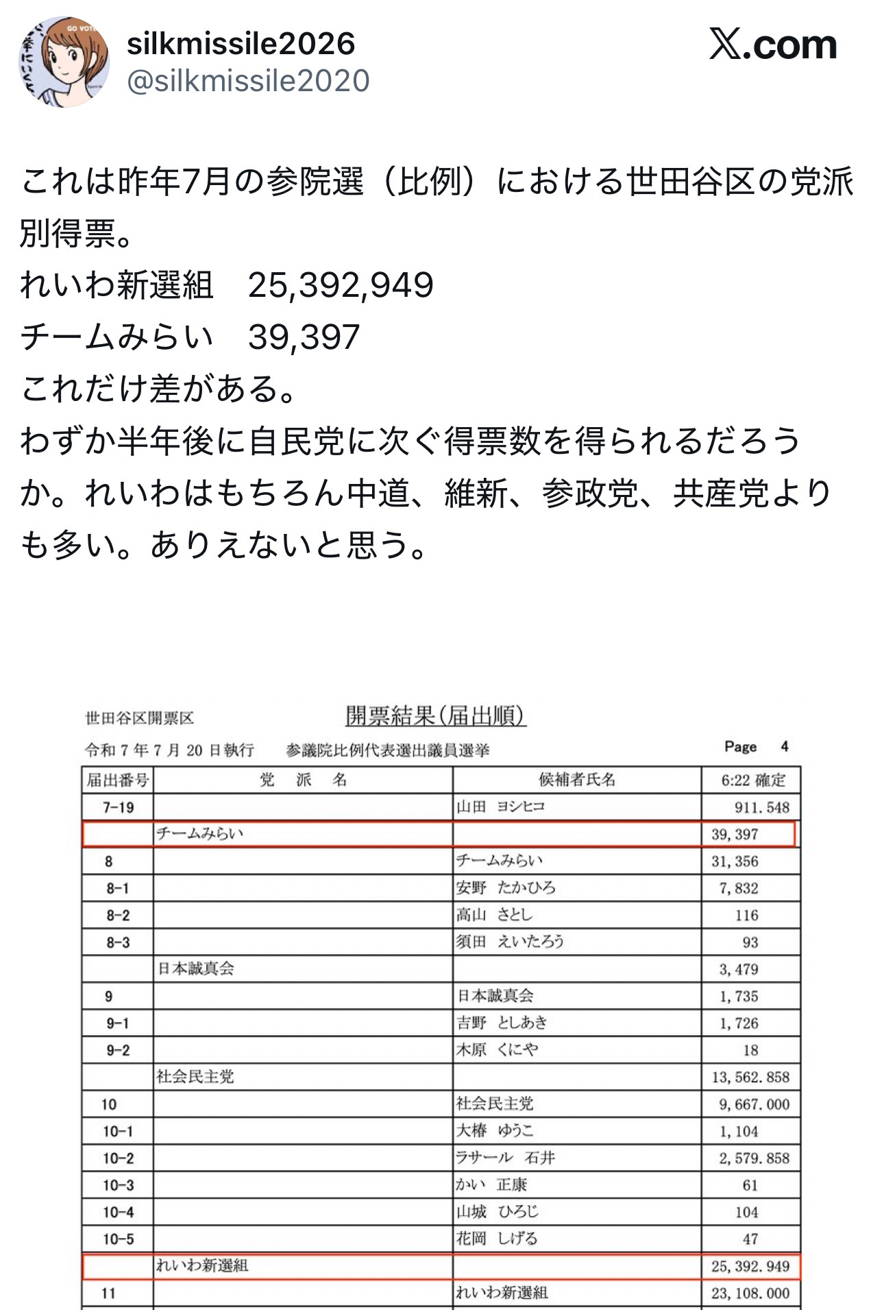 れいわが票をみらいにハッキングされたと言い出してて草