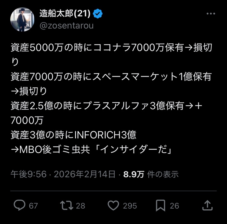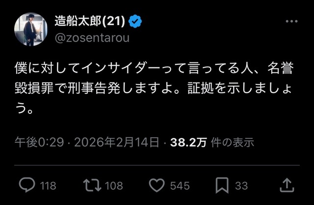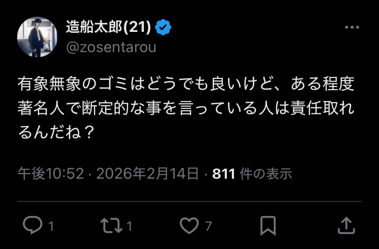 — 造船太郎(21) (@zosentarou) February 13, 2026